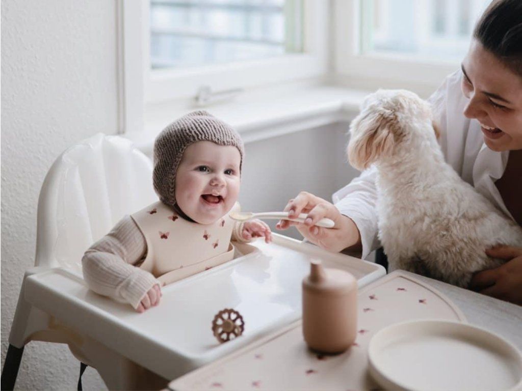 Silikonové prostírání Mushie pomáhá udržet stůl čistý i během těch nejdivočejších jídel. Díky protiskluzovému povrchu drží na místě a vytváří stabilní prostor pro talíř i hrneček.